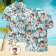 Custom Men's Shirt Face All Over Print Hawaiian Shirt White Green Large Leaves