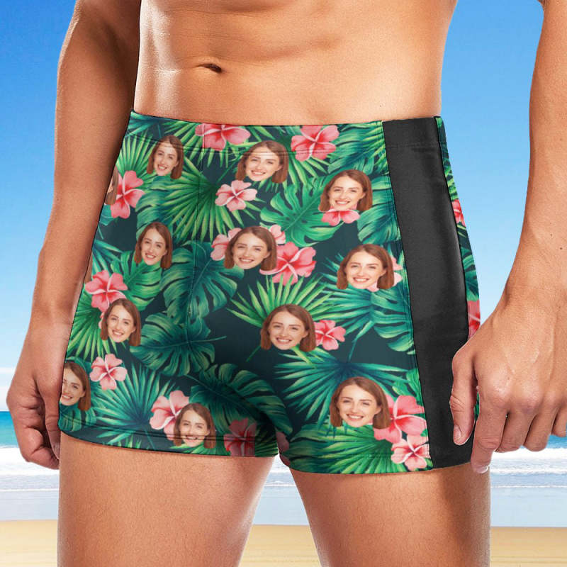 Custom Men's Swim Boxer Shorts, Hawaiian Face Swim Trunks, Peseronalized Swim Briefs - Flowers
