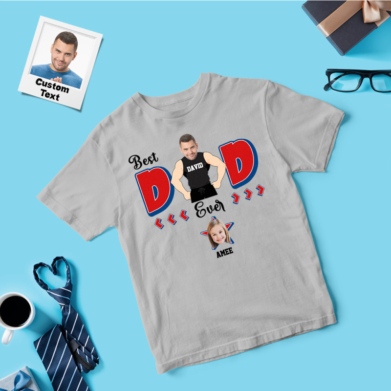 Custom Muscle Dad Shirt Father's Day Gray Shirt Photo And Name Tshirt Gift Happy Fathers Day Gift