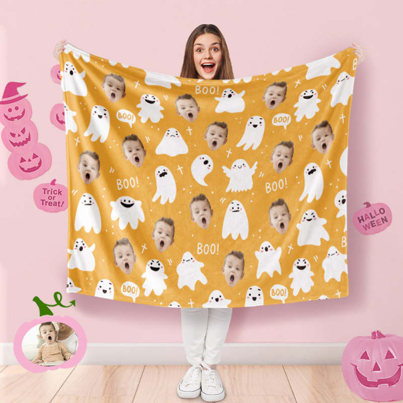 Custom Photo Blanket Halloween Decorative Expression Ghost Blanket For Kids