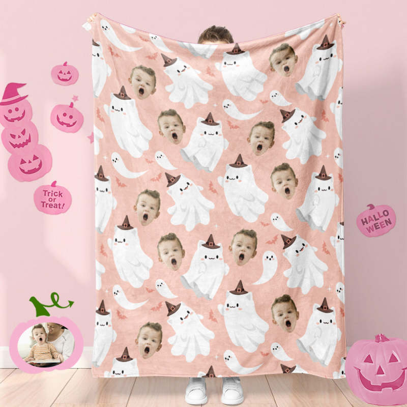 Custom Photo Blanket Halloween Decorative Hat Ghost Blanket For Kids