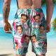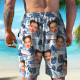 Custom Photo Cruise Ship Beach Shorts Gift For Traveling Lovers Personalized Green Leaves Face Beach Shorts