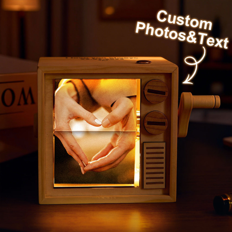 Custom Photo Flipbook Frame Animation Machine Mechanical Hand-cranked Flipbook Box with Light Black Walnut Valentine's Day Gifts