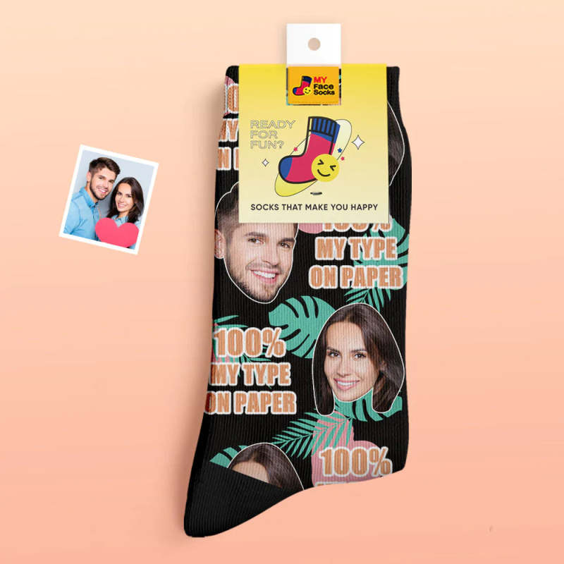 Custom Thick Photo Socks Valentine's Day Gift Warm Socks 100 MY TYPE ON PAPER Face Socks