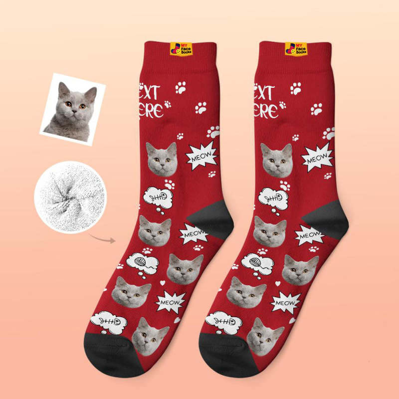 Custom Thick Socks Photo 3D Digital Printed Socks Autumn Winter Warm Socks Cat Meow