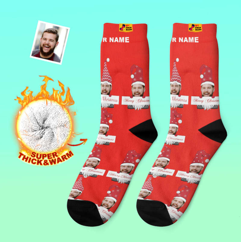 Custom Thick Socks Photo Autumn Winter Warm Socks Christmas Gnome Socks Merry Christmas