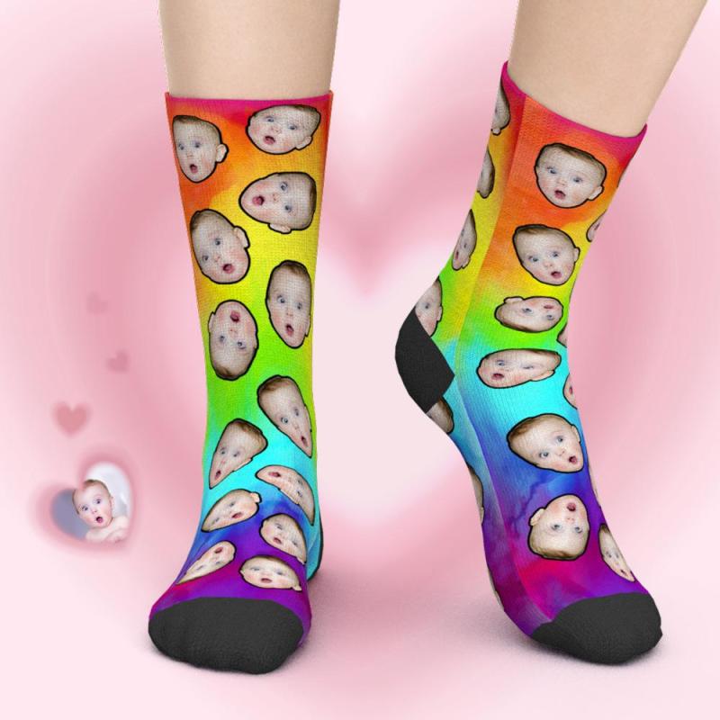 Custom Face Socks Add Pictures - LGBT Colorful Gradient