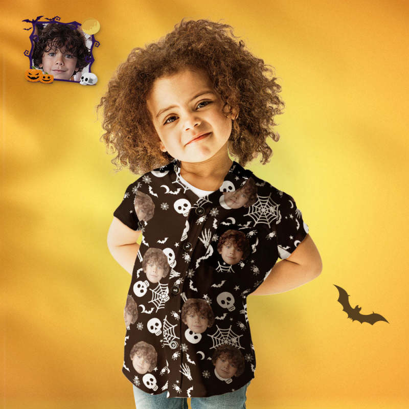 Kid's Custom Face Funny Halloween Print Personalized Halloween Hawaiian Shirt