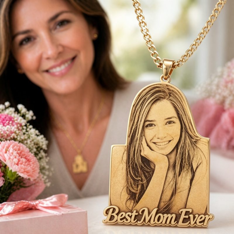 Personalized Custom Photo & Text Engraved Stainless Steel Necklace – Your Memories, Forever Worn Close to the Heart