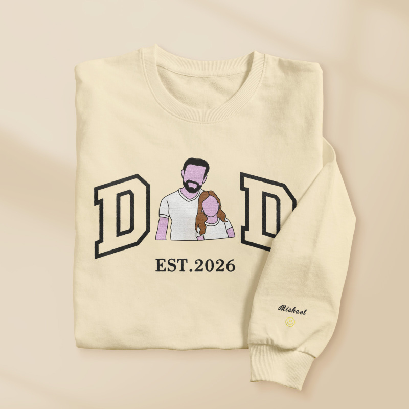 Personalized Embroidered Portrait Sweatshirt for Dad Father's Day Gift Custom Family Photo Embroidered Portrait Gift