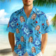 Personalized Face Hawaiian Shirt Summer Vacation Couple Face Hawaiian Shirt I Love My Wife Blue Flower Hawaiian Shirt