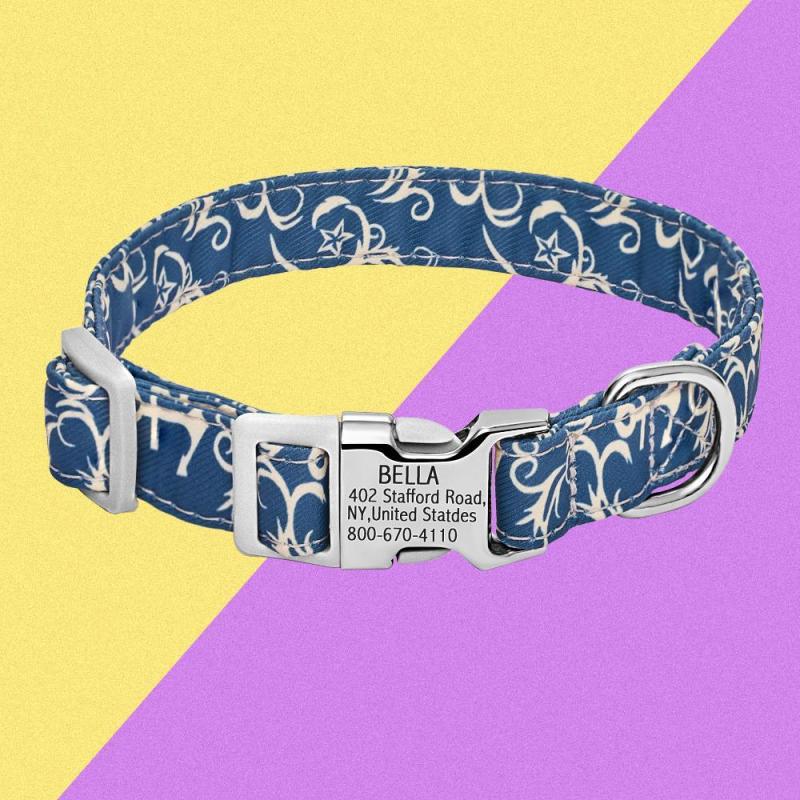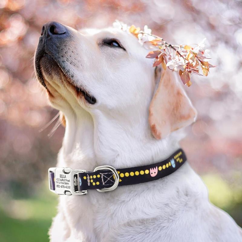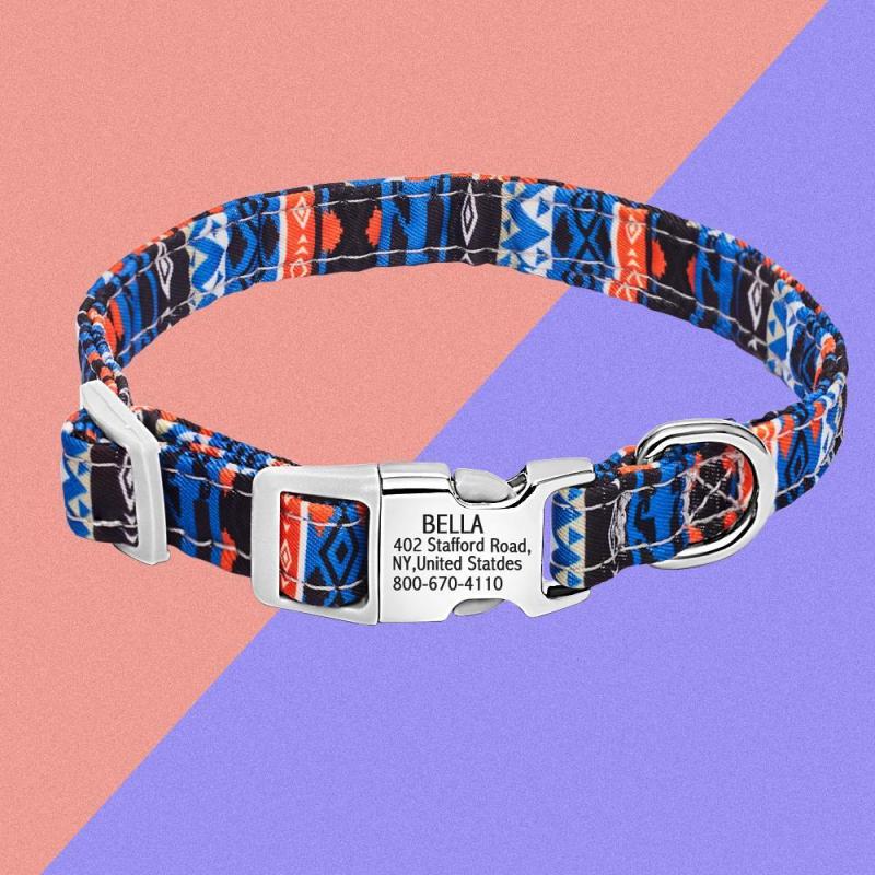 • The Nylon Personalized Dog Collar keeps your dog safe on the leash and if he or she escapes out into the world.