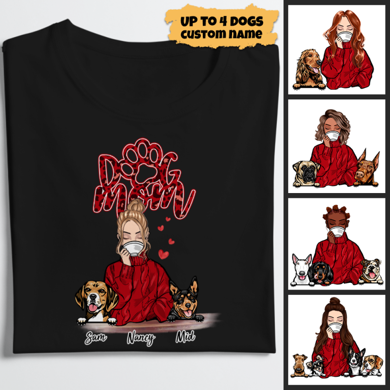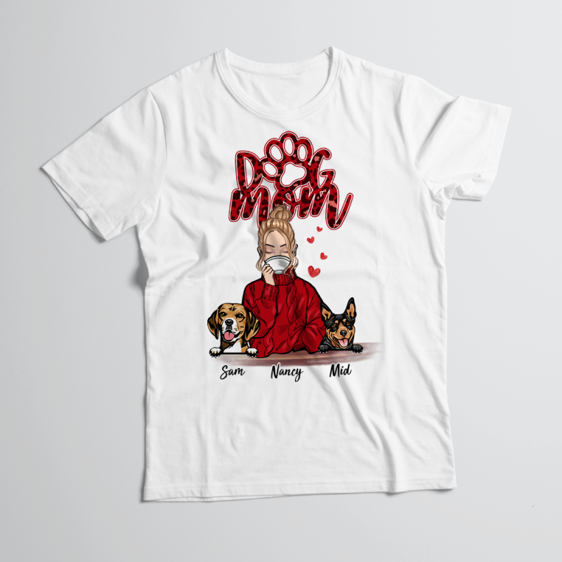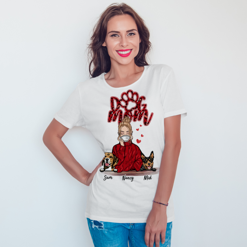 Personalized T-Shirt Dog Mom Elegant Mom Drinking Coffee Mother's Day Gift