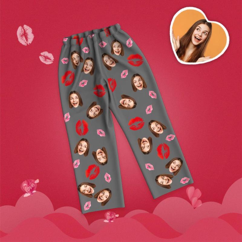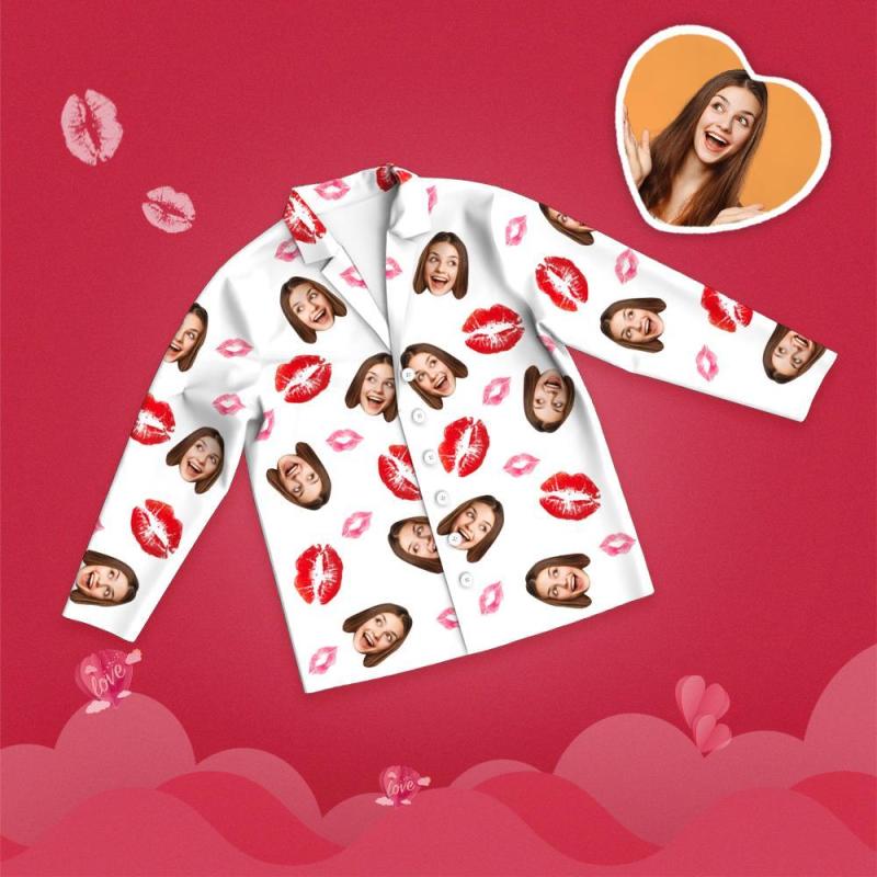 Custom Face Pajamas Lip Printed Long Sleeve Valentine's Day