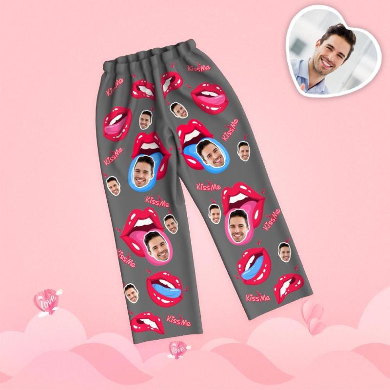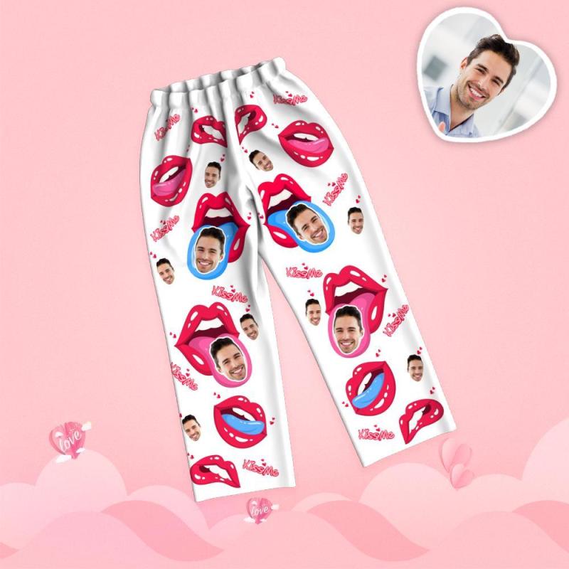 Custom Face Pajamas Long Sleeve Valentine's Day Tongue Kiss